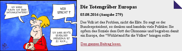 Offenbar haben solche Artikel heute exklusiven Charakter. Mal keiner, der die Schwarze Null zum Mantra erhebt, die Austeritätspolitik (was für ein Euphemismus für gnadenloses Sparen) zur Pflicht, die Alternativlosigkeit zur Glaubenslehre. Hier sagt einer, was kaum mehr einer zu sagen wagt: Diese EU opfert das Soziale dem Gott der Ökonomie, schafft obszönen Reichtum und bedrückende Armut. Wer so etwas schreibt, gerät in Gefahr, aus der Konsenskameradschaft verstoßen zu werden.