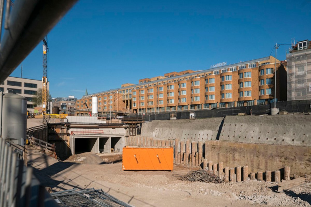 Zwischen der Willy-Brandt-Straße und dem hölzernen Fußgänger- und Fahrradsteg, der seit 2015 im ehemaligen Schlossgarten die Stuttgart-21-Baugrube überbrückt, verläuft in den Baufeldern 19 und 20 ein tiefer Graben. Hier soll der Nesenbachdüker das Wasser aus einem Großteil des Talkessels unter dem Bahnhofstrog hindurchleiten. Es ist der heikelste Punkt des gesamten Unterfangens, so heikel, dass sich anfangs kein einziges Bauunternehmen fand, das bereit war, die Arbeiten auszuführen. 2010 war die Fertigstellung des Dükers noch für Ende 2013 geplant.