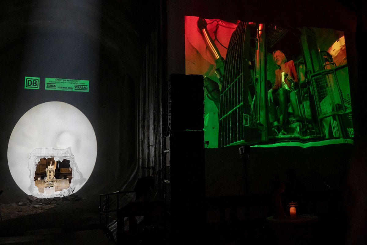Groß aufgefahren hat die Bahn: Mit einer Lasershow und einem über fünf Minuten langen Animationsfilm eigens für dieses Event. Zehn Herren hielten an diesem Mittwoch Reden, allesamt haben sie politische Spitzenämter inne oder sind als ranghohe Vertreter der Wirtschaft erschienen. Eine Frau war auch noch dabei: Arina Freitag, die Tunnelpatin und damit "irdische Repräsentantin der Heiligen Barbara", unter deren Schutz angeblich die Bergleute stehen. Eine Funktion, für die Männer qua Geschlecht ausscheiden. Freitag ist von der anderen Seite der letzten Tunnelwandzentimeter zugeschaltet und wird auf eine Leinwand projiziert. Dann steigt sie in einen Bagger, um den verbleibenden Rest Mauer einzureißen. Ein verräterischer Kameraschwenk offenbart allerdings, dass sie die Maschine nicht alleine bedienen darf, sondern ein Mann ihre Hand führt …