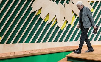 Also: schlechte Laune weg, stattdessen optimistisch den Problemen der Zeit begegnen. Einzelheiten führt Habeck nicht aus, hier geht es um große Linien und um Haltung. Den politischen Gegner nennt er selten, nur hier und da ein Seitenhieb: In manchen Branchen, vor allem im Autobau, sei Deutschland im 20. Jahrhundert Weltmarktführer gewesen. "Dummerweise leben wir seit 25 Jahren im 21. Jahrhundert." Wer aber nun an alten Technologien festhalte, habe das offenbar nicht verstanden.