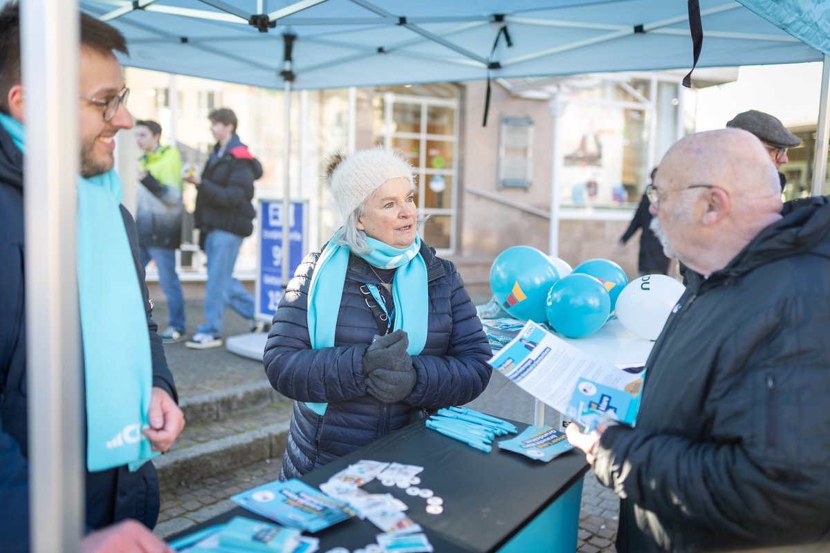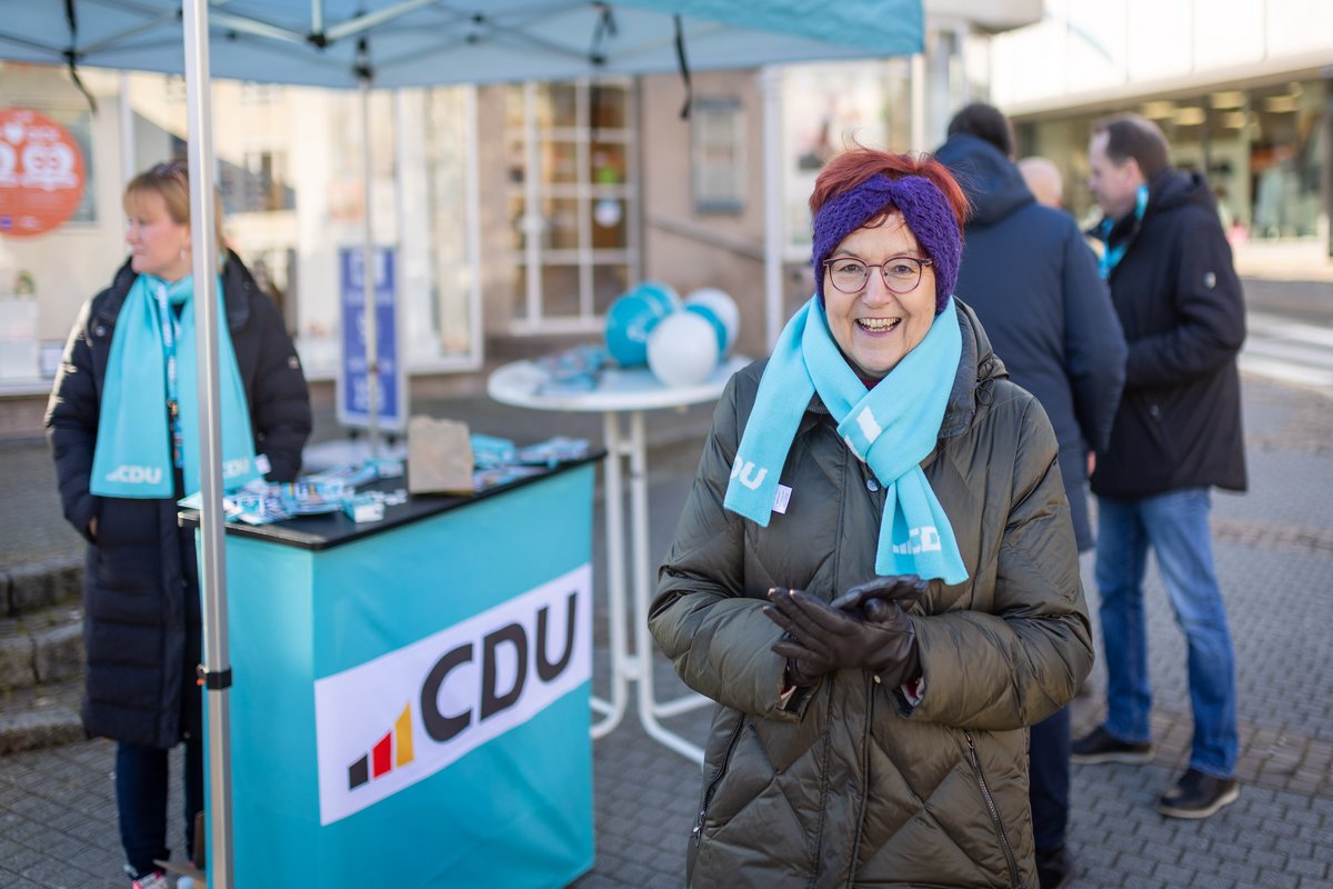 Nein, das war keine Zusammenarbeit – davon ist auch Sabine Kutteroff überzeugt. Seit 20 Jahren sitzt sie für die CDU im Backnanger Gemeinderat und an diesem kalten Vormittag wirbt sie am Info-Stand an der Sulzbacher Brücke für ihre Partei. Die Aktion ihres Kanzlerkandidaten Friedrich Merz vorige Woche im Bundestag, um Mehrheiten mit der AfD für schärfere Flüchtlingspolitik zu suchen, findet sie richtig. "Wir kennen doch hier vor Ort das Problem. Wir nehmen Flüchtlinge auf, natürlich. Aber wir haben ja viel zu wenig Wohnungen." Weil man sich in den vergangenen 20 Jahren nicht um ausreichend neuen Wohnraum gekümmert hat? Kutteroff schüttelt energisch den Kopf. So sei das nicht, Wohnungsknappheit gebe es erst seit 2015, als viele Syrer:innen vor dem Bürgerkrieg aus ihrem Land flohen. "Und dann kamen aus der Ukraine ja auch nochmal viele." Kutteroff will auf keinen Fall als fremdenfeindlich rüberkommen. "Wir haben einen tollen Arbeitskreis Asyl, wir haben auch kein besonderes Problem mit den geflüchteten Menschen." Gibt es denn Probleme mit Gewalt, wie Friedrich Merz gerne erzählt? "Nein." Aber all die Menschen müssten ja nicht nur untergebracht werden, es brauche auch Schul- und Kita-Plätze, Ärzte – alles nicht ausreichend vorhanden. Man brauche einfach eine Pause. Außerdem käme von Bund und Land zu wenig Unterstützung für all die kommunalen Aufgaben.