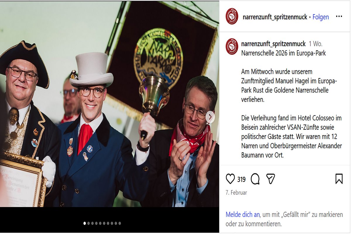 Am ehesten bei sich ist er in seinem Heimatort Ehingen. In der Mitte des Marktplatzes steht der Narrenbaum, von dem aus lange Schnüre mit bunten Fähnchen zum Rathaus, dem Amtsgericht und dem Haus der "Schwäbischen Zeitung" führen. Am Baum selbst hingen ein paar Wahlplakate von ihm – und nur von ihm, was manche Bürgerinnen und Bürger für unpassend hielten. Das Büro des Kandidaten für das Amt des Ministerpräsidenten (MP) bei der Landtagswahl am 8. März empfahl daraufhin, die Werbemittel zu entfernen. Die örtliche CDU sprach von einer "lustigen Aktion", weil der "Manu" auch Mitglied der Narrenzunft der "Spritzenmuck" sei. Letzteres stimmt, auch weil Hagel der Überzeugung ist, dass der Weg zwischen Politik und Komik bisweilen nicht weit ist.
