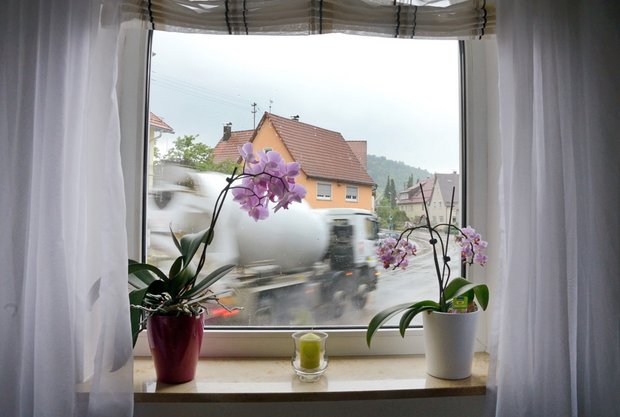 Reiner Zeller und Elke Barrabas leben in der Mitte links im Dorf. Sie haben schon ein paarmal ernsthaft darüber nachgedacht, in ihr Gartenhaus zu ziehen. Dann haben sie nur ihr Schlafzimmer von der Frontseite des Hauses in den hinteren Teil verlegt. Für das "Aktionsbündnis Gegenverkehr" haben sie Flyer gedruckt und in Gruibingen verteilt. "Wenn da so ein 40-Tonner durch den Ortskern donnert, haut's hier die Gullydeckel aus der Straße", sagt Rainer Zeller. "Kawummm!", sagt er. "Die fahren hier durch wie die Verrückten. Aber nicht nur durch Gruibingen, auch durch die anderen Orte im Tal. Aber die machen nichts dagegen. Wir sind hier die Bruddler."