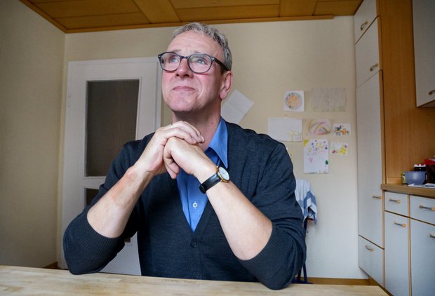 Johannes Stumpf sitzt in seiner Küche, kaum ein Auto fährt vorbei.