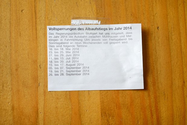 Johannes Stumpf hat wohl die schnellste Bürgerinitiative Deutschlands gegründet. Das Regierungspräsidium sagte kurz darauf die Tunnelsperrungen für die kommenden Wochen ab und verlegte sie auf August. Es kündigte nach dem Raststätten-Aufstand an, die Umleitungsstrecke noch einmal zu überdenken. Sanierungen mit Vollsperrung auf die Nächte zu verlegen und auch nur, wenn unbedingt notwendig. Nur noch zwei Spuren statt drei zu sperren. Am vergangenen Samstag war Baden-Württembergs Verkehrsminister Winfried Hermann zu Besuch. Bundesverkehrsminister Alexander Dobrindt hat die Pläne für den neuen Albaufstieg, die seit 2005 in einer Schublade vor sich hingammeln, wieder ausgegraben. Baubeginn 2018.
