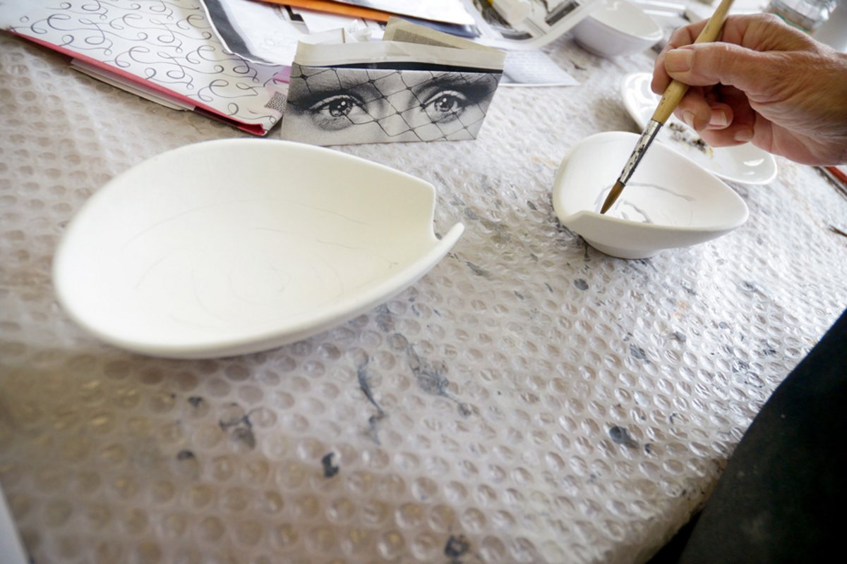 "Mit ganzer Kraft engagieren!", sagt er damals und begann, den Staub von all den Vasen, Tassen und Töpfen zu wischen, von den Goldglasuren, den roten, gelben, grünen Ornamenten, den Figuren auf den Tellern, den gut gelaunten Punkten auf Badezimmerfliesen, von den kleinen Kunstwerken auf Espressotassen und den ganz großen Gemälden auf Tischplatten.