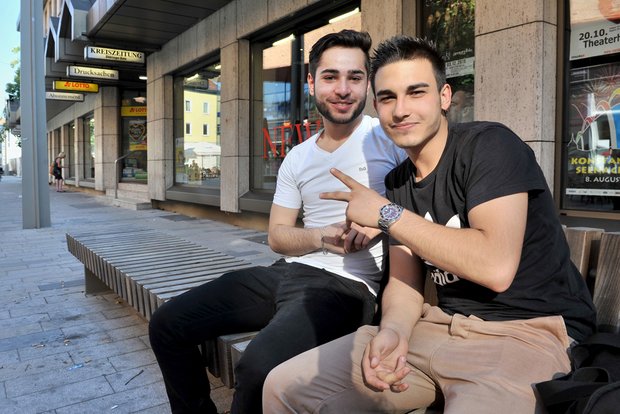 Salvo (links im Bild) wird bald Wirtschaftsinformatik studieren. Er ist 20 und lebt in der Nachbarschaft einer Flüchtlingsunterkunft in einem Vorort von Böblingen. „Ich habe es noch nie erlebt, dass einer von denen unfreundlich zu mir ist“, sagt er. „Und ich laufe da jeden Tag mit dem Hund vorbei.“ Mit zweieinhalb zog seine Familie von italienischen Turin nach Baden-Württemberg. Sein Kumpel Eric, Vater Franzose, Mutter Deutsche, sagt: „99 Prozent all derer, die hierher kommen, sind tolle Menschen.“ Alle Menschen sollten sich um mehr Akzeptanz bemühen, religiöse wie kulturelle. "Es geht nicht um Anpassung", sagt er. „Wir akzeptieren die Gewohnheiten der Migranten und andersrum ist es auch so. So sollte es eigentlich sein.“ Eric ist 22 und arbeitet bei der Post.