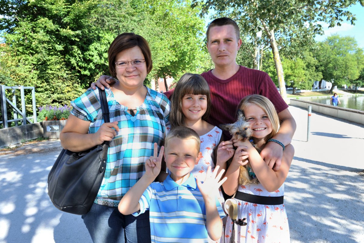 Sallys Vorfahren stammen aus England, sie selbst ist in Deutschland geboren. Der kleine Yorkshire Terrier gehört schon immer der Familie Vögler. Vater Timo kommt aus Kasachstan, seine Frau Olga aus Kirgisien. Sie kam 1995 nach Deutschland, er 2002, beide sind Spätaussiedler. "Wie lange bin denn ich in Deutschland, Papa", fragt Leon, der Sohn. "Seitdem du geboren bist." "Sieben Jahre!" ruft Leon. Manchmal vermisse er seine Tante, sagt der Bub. "Die wohnt gaaanz weit weg." Seine beiden Schwestern Xenia und Vanessa nicken zustimmend.
