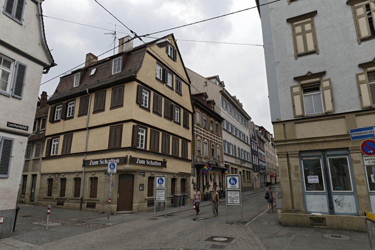 Ungefähr die Hälfte aller Häuser des Leonhardsviertels steht unter Denkmalschutz. Das ist viel, letztlich aber völlig inkonsequent. Während in der Calwer Straße 1976 erstmals eine "Gesamtanlage" unter Ensembleschutz gestellt wurde, von der allerdings nur die Fassaden erhalten blieben, steht im Leonhardsviertel die Bausubstanz noch.
