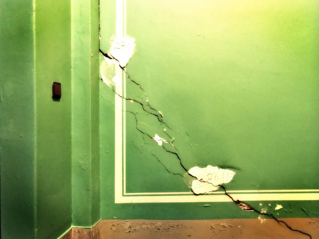 An einer Stelle dringt Wasser ein, der Putz bröckelt, die schönen alten Fliesen sind zerschlagen.