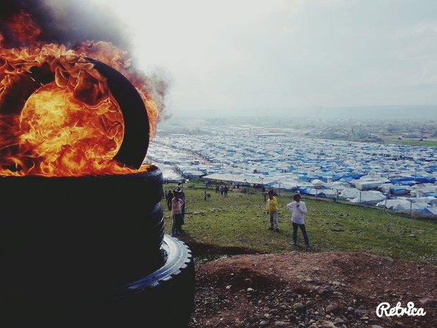 "Das war auf einem Hügel neben dem Flüchtlingslager. Da haben wir ein kurdisches Fest gefeiert. Das war am 21. März. Abends macht man ein Feuer. Wir haben das Feuer gemacht, und dann kam die Polizei und sagte, es geht nicht. Aber wir haben Musik gemacht und getanzt, und ein bisschen konnte man das alles um sich herum vergessen."
