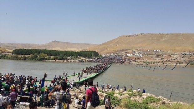 "Kurz vor der Grenze konnten die Autos nicht weiterfahren. Es gab nur drei bis vier von diesen kleinen Pick-ups. Ein Mann vermietete das Auto und nahm Gepäck mit, aber man musste viel bezahlen. Es war Sommer und sehr heiß. Über die provisorische Brücke ging der Weg zur Grenze. Kurdische Peschmerga sorgten dafür, dass nicht zu viele auf einmal über die Brücke gingen. Es war so heiß, und es gab kein Wasser. Manche haben das Wasser aus dem Fluss getrunken. Wenn den Leuten das Gepäck zu schwer wurde, haben sie es einfach fallen lassen. Auf der Brücke bin ich über Taschen, Fernseher, Fotos gelaufen ... auch ein totes Kind. Die Grenze war zu. Und es wurden immer mehr Leute. Meine Eltern haben gesagt, wenn die Grenze geöffnet wird, soll ich zuerst gehen, da ich, wenn ich bleibe, in der kurdischen oder syrischen Armee oder für die Opposition kämpfen muss. Als sie endlich geöffnet wurde, bin ich schnell mit zwei Koffern los. Es war sehr eng. Ich habe mich dann hinter der Grenze hingesetzt und habe gewartet. Zwei Stunden. Dann habe ich meine Mutter und Schwester gesehen. Dann mussten wir warten, bis uns Fahrzeuge zum Camp gefahren haben. Es kamen Busse, Taxis, Armeefahrzeuge, Lastwagen, aber es waren einfach zu viele Leute. Wir haben von morgens bis abends gewartet. Um 21 Uhr konnten wir mit."