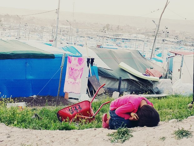 "Das Bild habe ich auf einem Berg oberhalb des Camps gemacht. Jeden Nachmittag sind mein Freund und ich hochgestiegen und wir haben uns gefragt: 'Warum sind wir hier?', 'Was machen wir hier?', 'Wie kann eine Familie in einem Zelt leben?' In Syrien haben wir ein Haus, Zimmer, ein Garten. Und jetzt ein Zelt. Kochen, Schlafen, Bad, alles in einem Zelt. In Syrien, wenn wir da Camps im Fernsehen gesehen haben, haben wir uns gefragt, wie das geht. Wir dachten, es geht nicht."