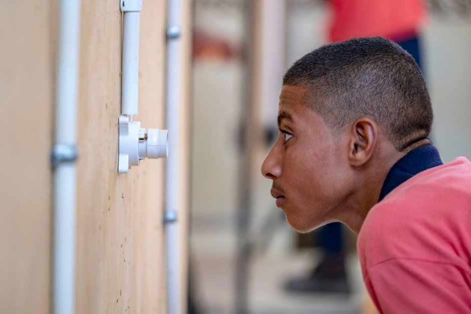 Anfang Oktober dieses Jahres waren die Deutschen wieder vor Ort. Die sechs Fachleute machten zwei Tage lang Aufnahmetests mit den jugendlichen Bewerbern für die Elektro- und Sanitär-Ausbildung für das nächste Schuljahr. Jeweils 20 Ausbildungsplätze stehen im deutschen Projekt zur Verfügung. Mehr als 30 Jungs bewarben sich pro Ausbildungsgang und mussten im Test beispielsweise einen Stecker anschließen und nach Vorlage einen Draht mit einer Zange biegen. So zeigt sich, wie geschickt oder ungeschickt die Jungs mit Werkzeug umgehen. Diejenigen, die nach dem ausgeklügelten Bewertungsbogen keinen Platz ergattern, machen die "normale" dreijährige ägyptische Elektro-Ausbildung an der Berufsschule; das heißt, sie haben weniger Praxisstunden als die Azubis im deutschen Projekt.