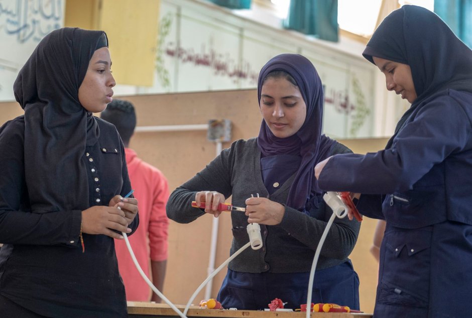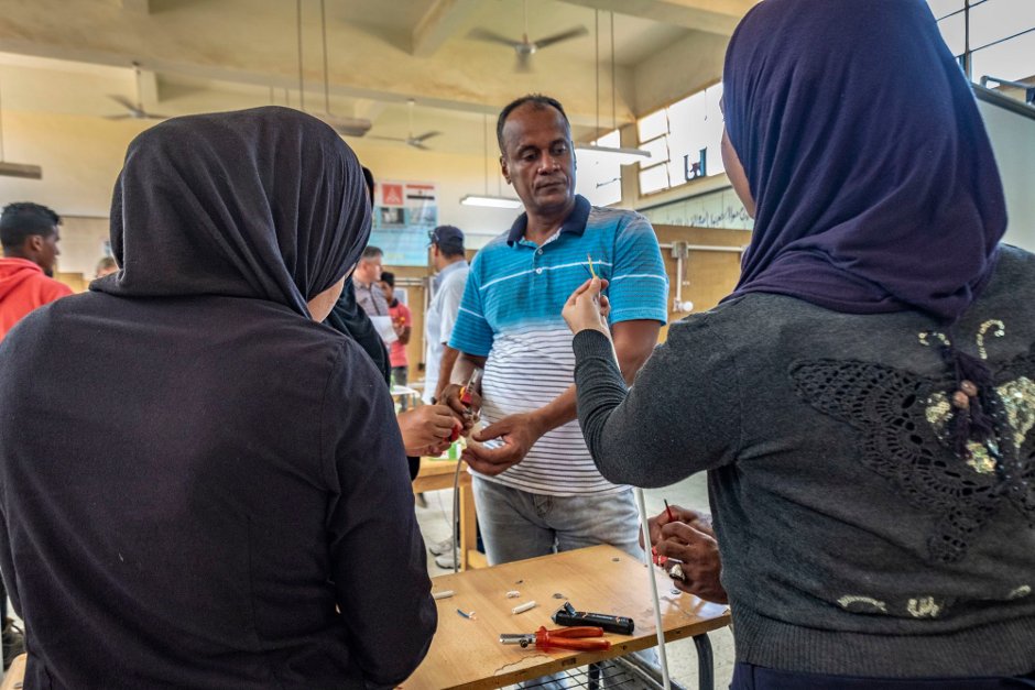 Seit dem sogenannten arabischen Frühling 2011 engagierte sich Sieghard Bender, ehemaliger IG-Metall-Chef in Esslingen und großer Fan von Ägypten und seiner 6000 Jahre alten Geschichte, für ein Ausbildungsprojekt im oberägyptischen Luxor. Sieghard Bender starb 2013 unerwartet, aber sein Traum ist Wirklichkeit geworden. Mit ungeheurer Geduld und Zähigkeit haben Benders MitstreiterInnen eine Ausbildungswerkstatt für Elektriker an der Secondary Industrial School Odaisat in Toth aufgebaut. Seit 2014 beginnen dort jedes Jahr 20 Jugendliche ihre Elektriker-Ausbildung im "deutschen Projekt", wie es dort heißt. Im vorigen Jahr wurden die ersten jungen Frauen in das Ausbildungsprojekt aufgenommen. Die künftigen Elektrikerinnen dürften in Ägypten eine Minderheit sein. Zwar können Mädchen problemlos Elektrotechnik studieren, doch wenn es um Berufsausbildung geht, werden sie zumindest in Oberägypten in die Näh- oder Malerwerkstätten gedrängt.