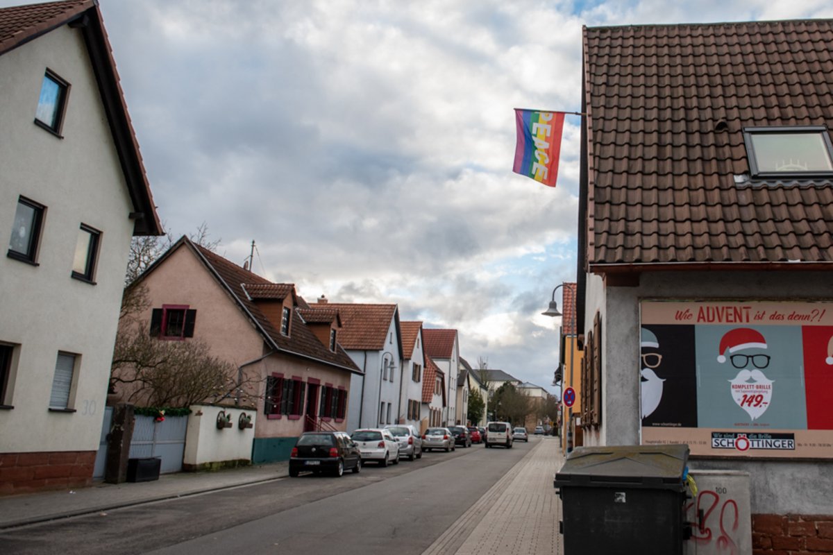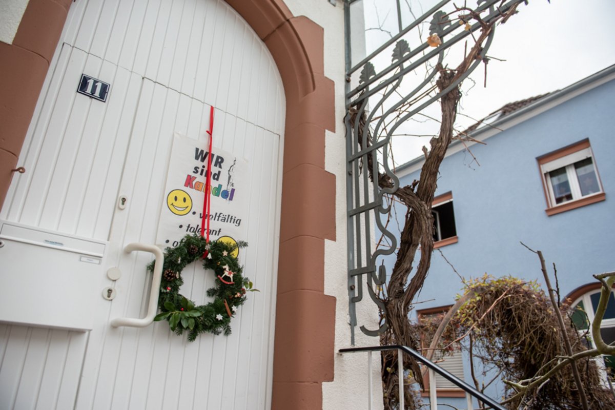 In diesem Haus wohnt Marlies Küppers mit ihrer Familie. Seit 34 Jahren ist sie Kandlerin und liebt den Ort, weil er klein ist und übersichtlich und trotzdem alles da ist, was man zum Leben braucht. Seit einigen Monaten hängt an ihrer Tür, wie an so vielen anderen Türen und Fenstern der achteinhalbtausend Einwohner-Stadt, das Plakat von "Wir sind Kandel": der Organisation, die sich gegen die rechten Demonstranten stellt, die den Ort in Beschlag nehmen. "Man muss sich wehren", sagt sie. "Es ist toll, wie alle gegen die Rechten zusammenstehen, von der CDU bis zur Linken. Eigentlich sind wir alle Antifa."