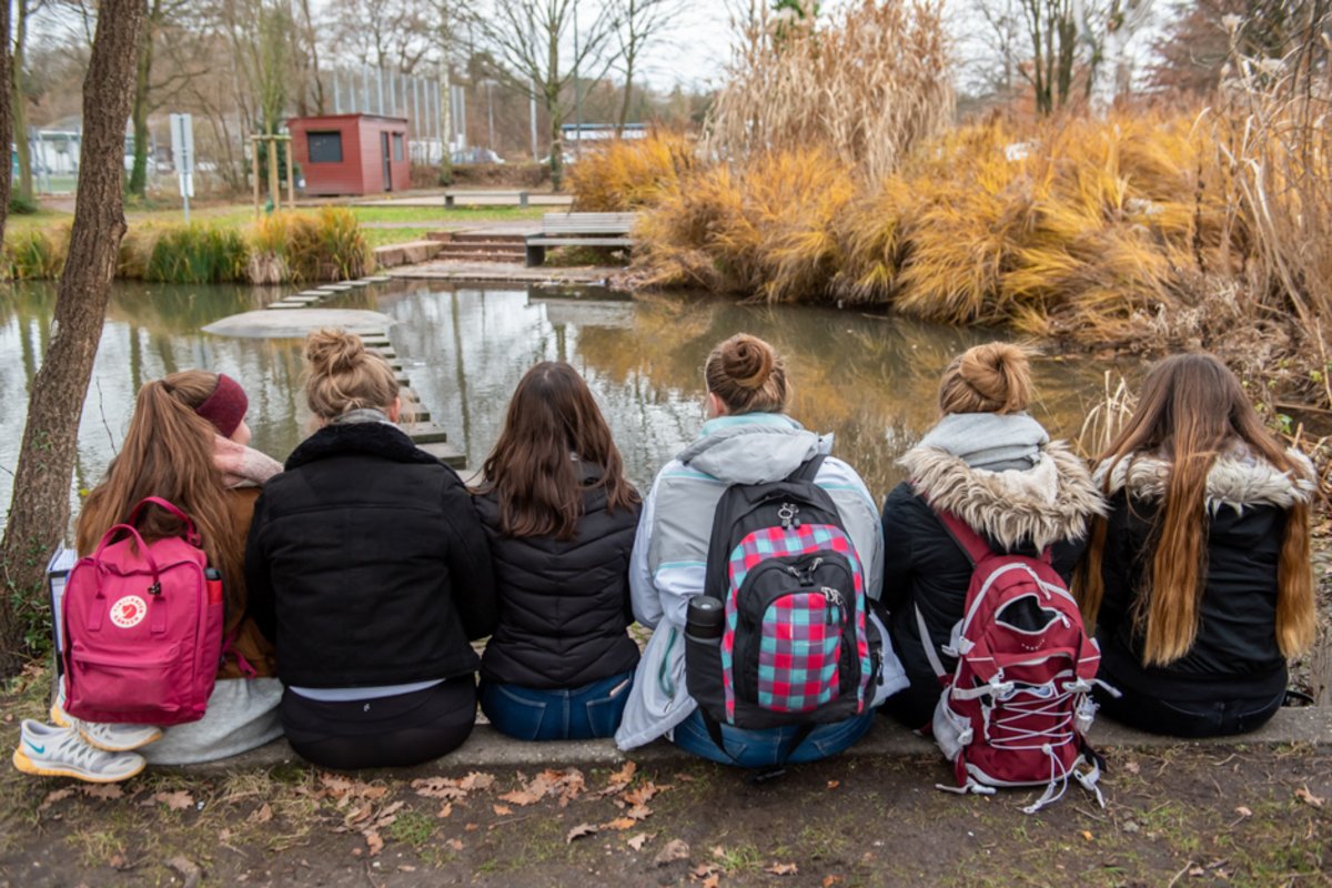Die Gruppe Mädchen kommt gerade vom Sportunterricht und sitzt ratschend und lachend am Seeufer. Ihre erste Frage an uns: "Ihr seid aber keine Rechtsradikalen, oder?"