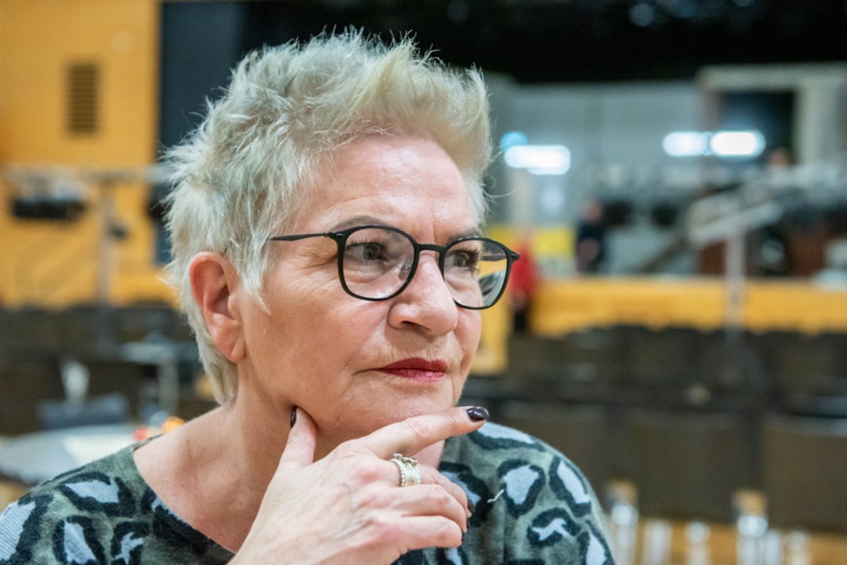 Im Foyer steht Jutta Wegmann zwischen den doppelten Kandlern in rot und grün – hölzerne Doppelgänger von sich, welche die Mitglieder von „Wir sind Kandel“ gebastelt haben, damit die Gegendemos größer werden. Momentan überlegt die Initiative, ob sie die Figuren in einer Art Wanderausstellung reisen lassen soll an Orte, an denen es mehr Menschen braucht, die gegen Rechts auf die Straße gehen. Es gibt Männer, Frauen, Kinder, sogar zwei Terrier, einen Labrador und einen Dackel aus Holz.