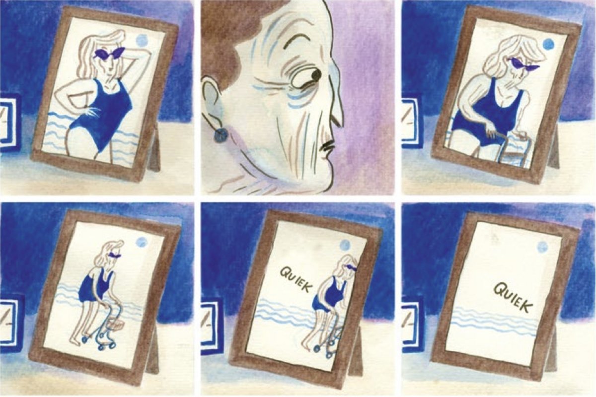 Ist "Ferngespräch" ein Comic über den Sommer, die Ferien? Zumindest ganz am Anfang scheint es fast so. Ein kleines Mädchen sieht mit Mutter und Tante die Wettervorhersage im Fernsehen, das Wort "Rekordsommer" fällt. Auf der nächsten Seite planscht sie mit einem Schwimmring im Wasser, und die leichten Aquarellbilder mit dem vielen grellen Gelb, den transparenten und verschwimmenden Farben vermitteln einen Eindruck flirrender Hitze und sommerlichen Müßiggangs. Doch irgendwann sieht das Mädchen eine schemenhafte Figur am Strand und schwimmt zu ihr. Es ist ihre Oma. Aber als es ankommt, liegt die Oma in einem Krankenbett, mit Nasensonde, und fängt zum Schrecken des Mädchens an sich aufzulösen, zu zerlaufen. Das Klingeln eines Telefons drängt sich in die Bilder, der Strand mit den Palmen, der am Fuße eines kegelförmigen Bergs liegt, rückt immer weiter in die Ferne. Bis man schließlich sieht, dass der Berg das Motiv auf einem Fächer ist, versehen mit dem Schriftzug "The Philippines".