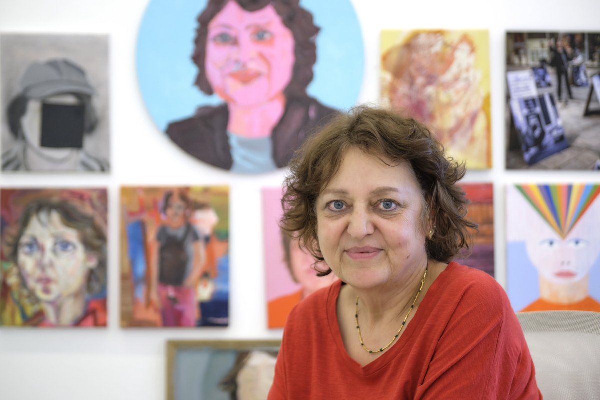 Seit 25 Jahren unterrichtet Güdemann eine Malklasse an der Stuttgarter Akademie. Dies ist der Anlass der Ausstellung. Und aus diesem Anlass hat Wolfgang Neumann, der von 1998 bis 2003 bei ihr studiert hat, vorgeschlagen, dass alle 22 beteiligten früheren und heutigen Studierenden jeweils ein Porträt der Professorin anfertigen sollten. Da hängen sie nun, 22 Porträts neben- und übereinander im Eingangsbereich der Galerie, und zeigen das Können, aber auch die Unterschiede in Stil und Herangehensweise der KünstlerInnen.