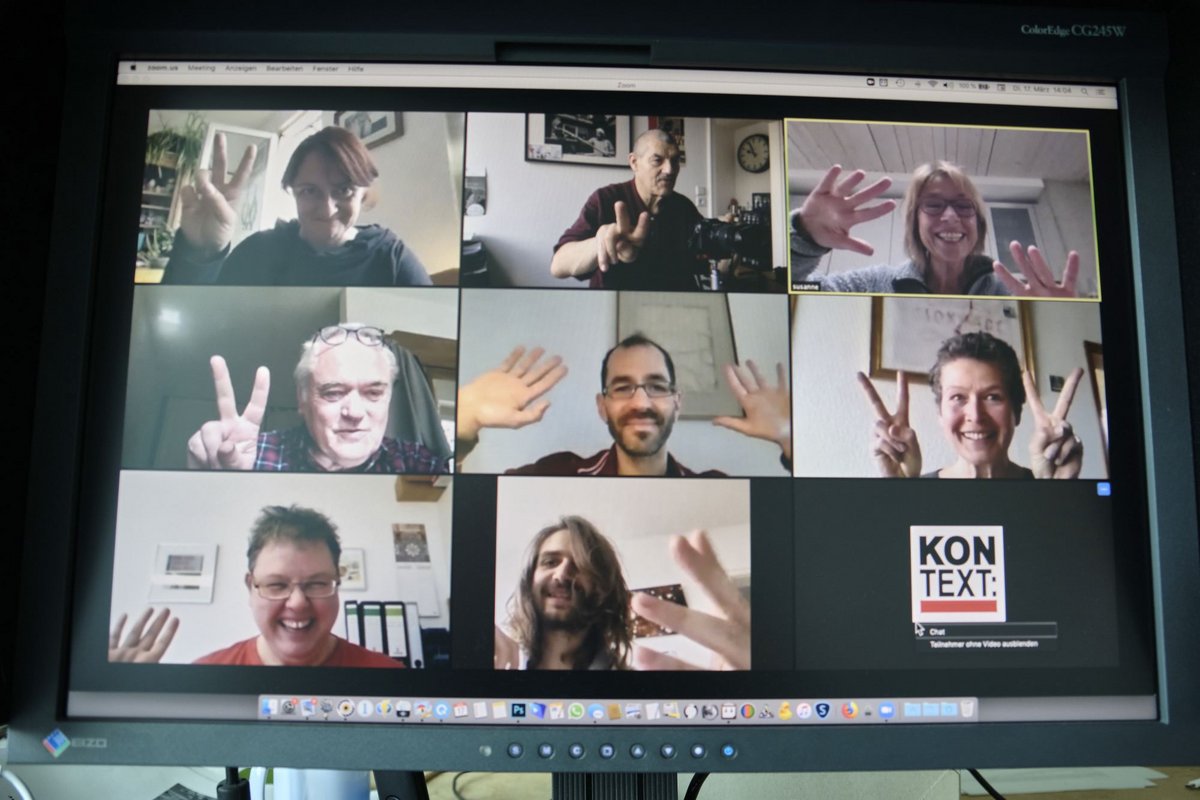 17.03.2020: Auch die Kontext-Redaktion wechselt ins Homeoffice. Konferenzen finden digital statt.