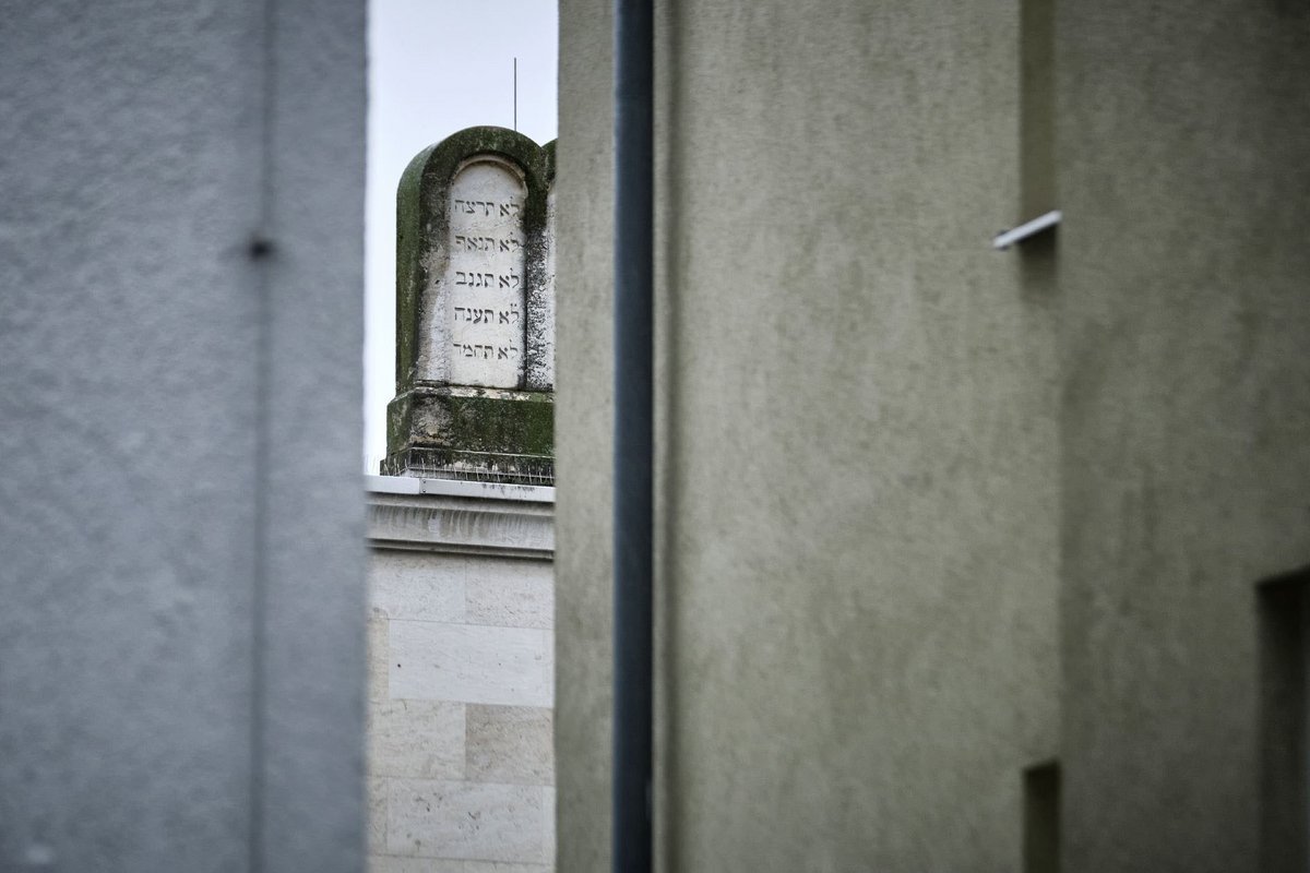 Bei seinem Neubau aus hellem Stein, in schlichten, kubischen Formen setzte Guggenheimer die geretteten Tafeln wieder aufs Dach, diesmal aber über dem Eingang, der sich weiterhin an der Firnhaberstraße befand. Zwei Seitenflügel umschlossen einen kleinen Vorhof mit einer Brunnenschale, der ein wenig an die Alhambra erinnerte – auch wenn sonst von den maurischen Formen des Vorgängerbaus nichts übrig blieb. Inzwischen hat die Gemeinde ein betreutes Seniorenheim davor gesetzt, sodass die Tafeln nur noch durch einen Spalt zwischen zwei Gebäuden teilweise zu sehen sind. Der Eingang befindet sich an der Hospitalstraße: eine geschlossene Wand, kameraüberwacht, die Tora-Tafeln nur aufgemalt, die Bronzeskulptur eines brennenden Dornbuschs davor.