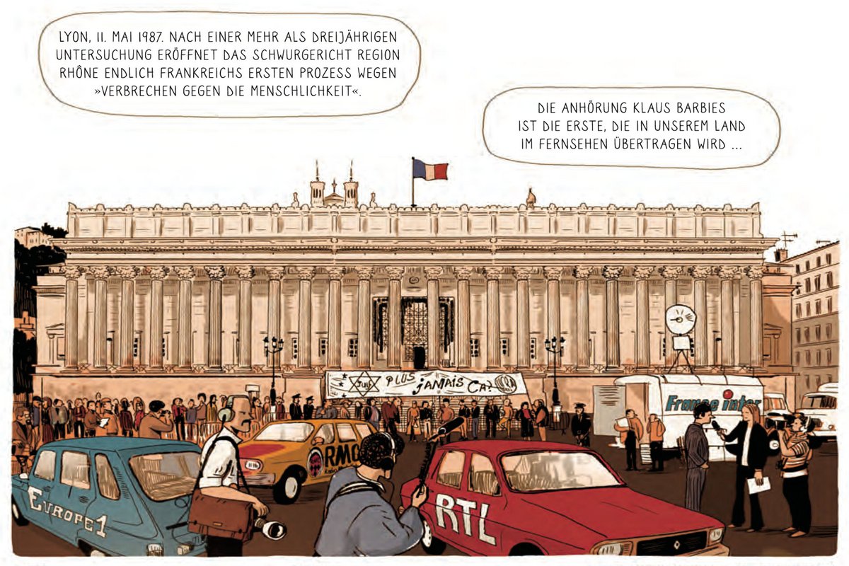 Dieses Abkommen wird im Comic kaum erwähnt, die Abstimmung im Bundestag, bei der Beate Klarsfeld anwesend war, kommt nicht vor. Was nicht weiter stört, faktengesättigt ist der Band ohnehin schon, und rund zwei Drittel seines Inhalts sind einem speziellen Fall gewidmet: der Jagd nach Klaus Barbie, dem ehemaligen Gestapo-Chef von Lyon, der wegen seiner Grausamkeit auch als "Schlächter von Lyon" bekannt war.