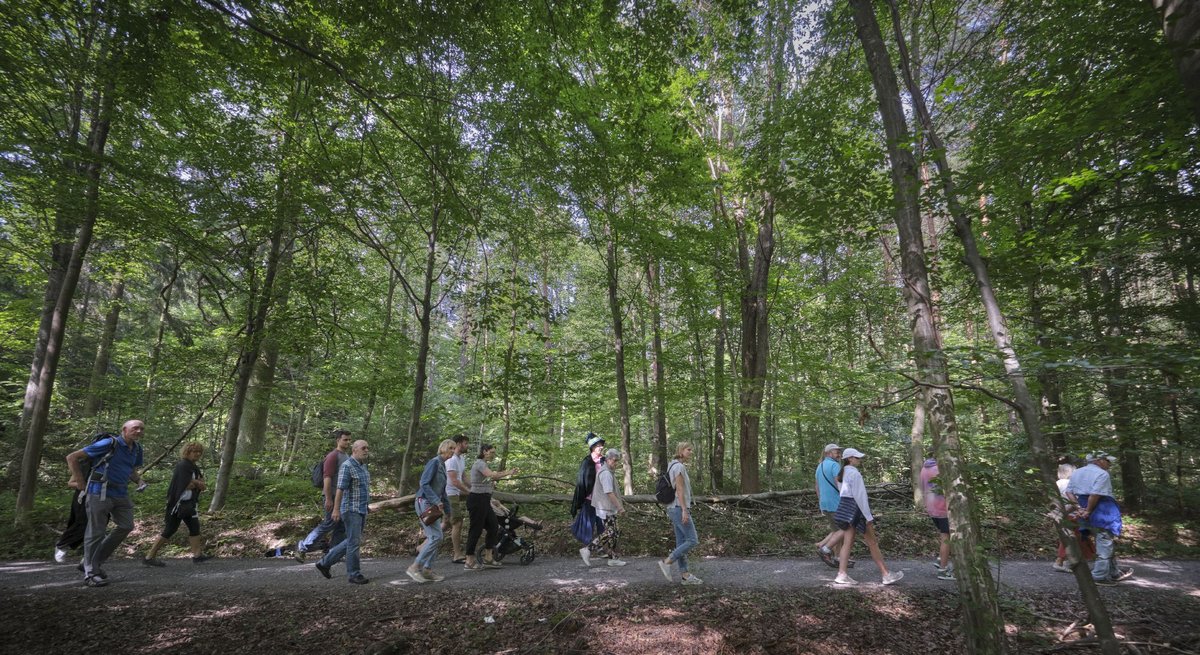 Tatsächlich ist der Parcours für alle Altersgruppen gut geeignet. Er hat nichts von der Langeweile eines Klassiker-Pflichtprogramms, auch wenn Manche gekommen sein mögen, um ihr Wissen zu Schillers rebellischem Erstlingswerk abzurunden oder ihren Kindern zu vermitteln. Die Kulisse passt jedenfalls gut. Immer wieder tritt unvermutet eine neue Gestalt hinter einem Baum hervor. Es erinnert ein wenig an ein Kasperltheater, wo es die Figur des Räubers noch gibt.