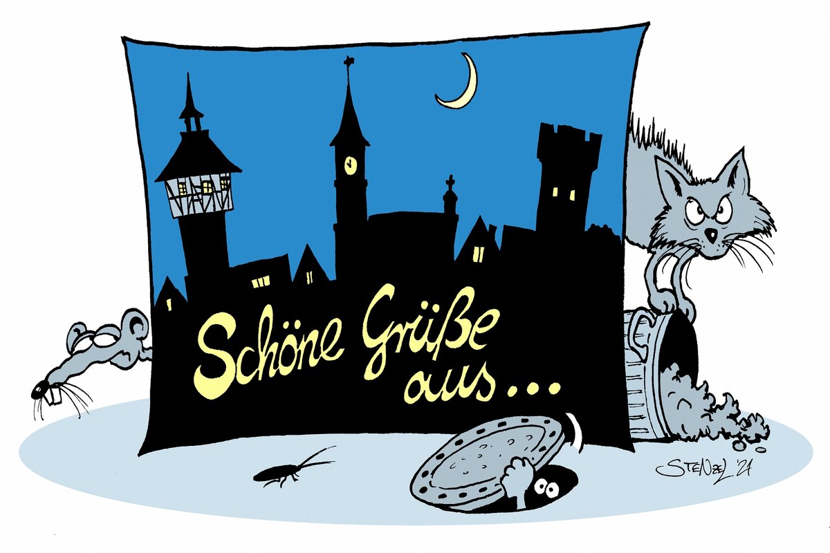 Hinter der Postkarte: Stadt mit zwei Gesichtern
