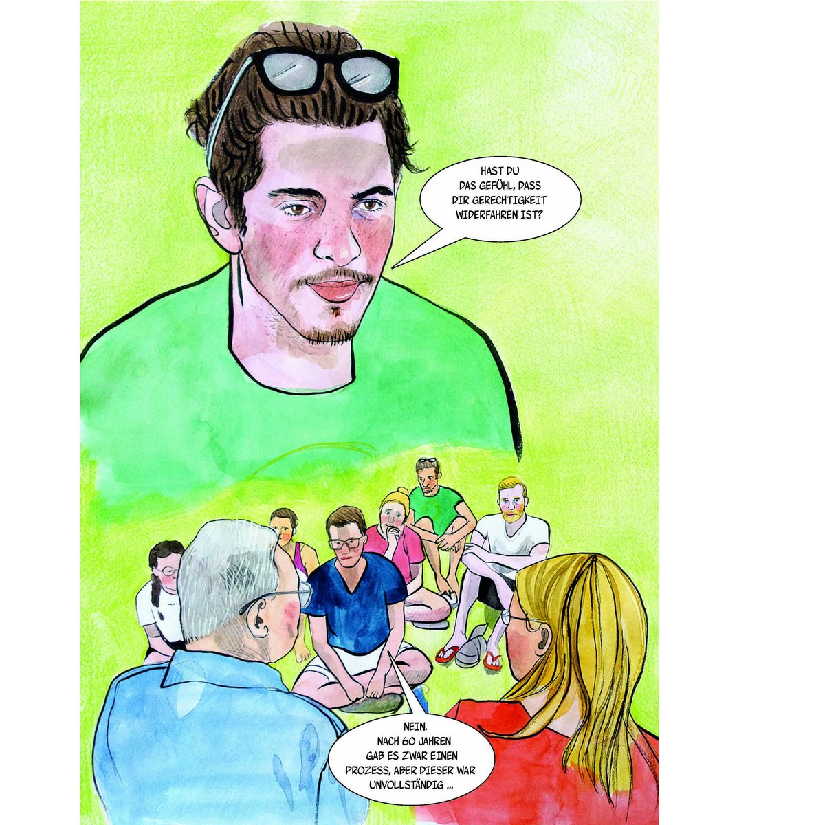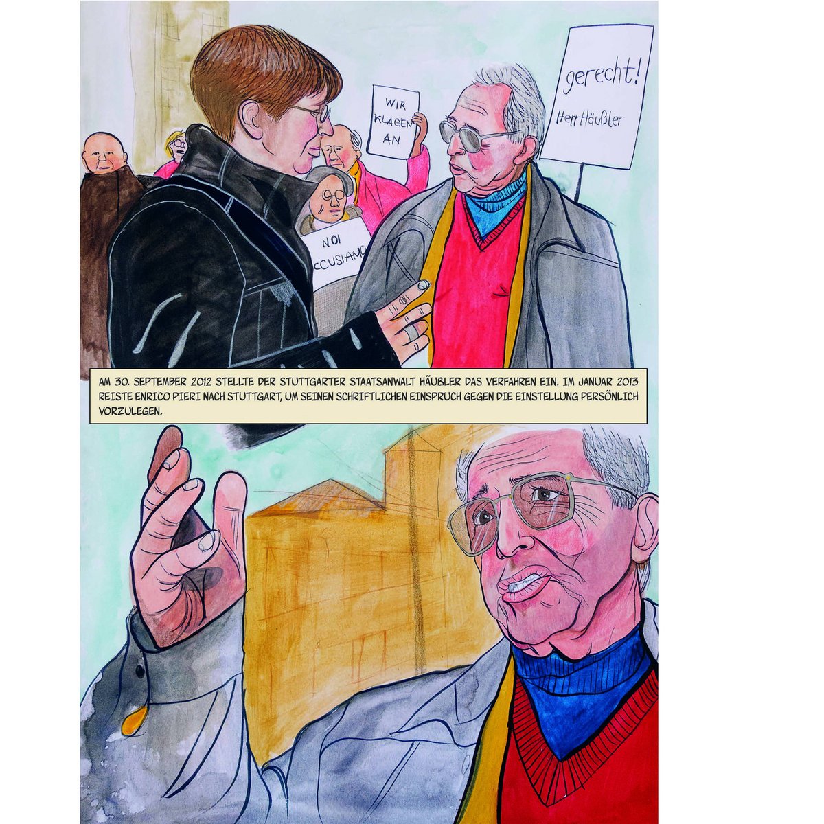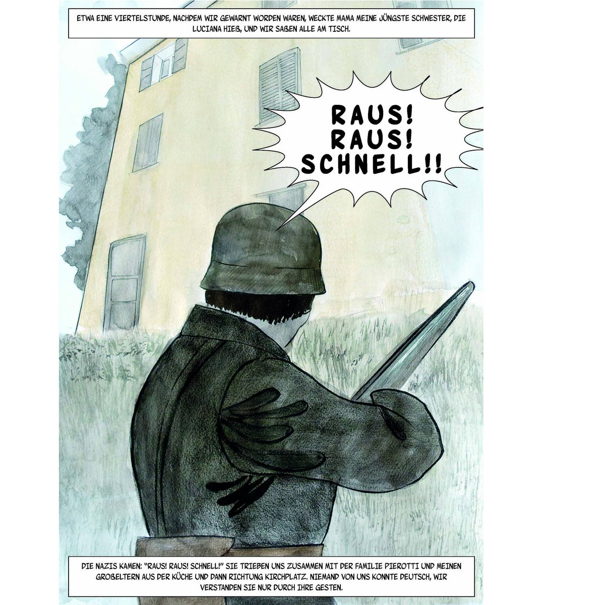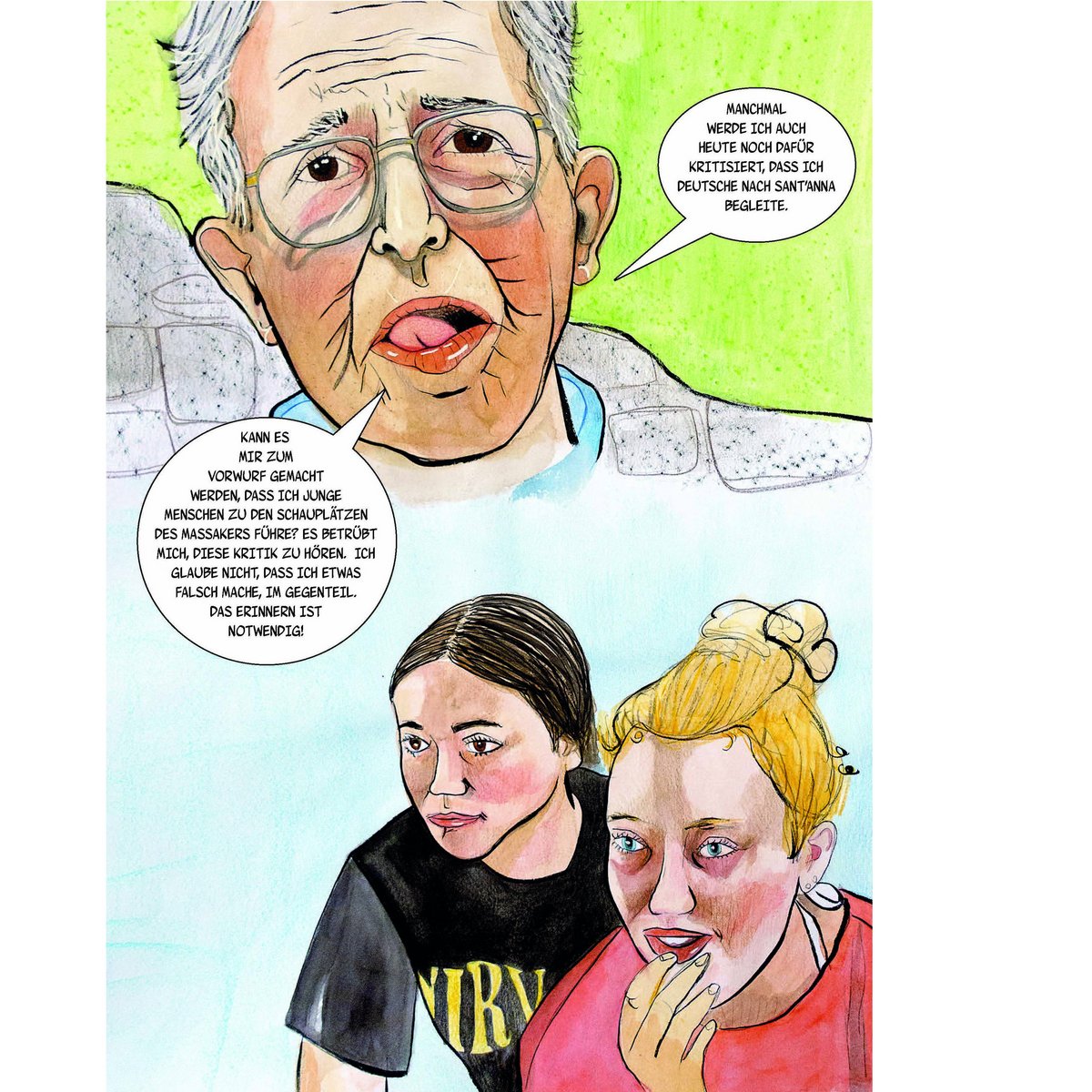 Über jedes Bild könnte sie lange reden, sagt Irene Lupi, aber dieses eine aus ihrer Graphic Novel sei ihr besonders wichtig: Es zeigt, wie Enrico Pieri eine Gruppe Menschen trifft. Jede und jeder einzelne wird von ihm persönlich begrüßt, auf eine offene, sehr herzliche Weise. "Das war etwas, was mich sehr beeindruckt hat", sagt die italienische Künstlerin. Pieri habe über eine seltene Gabe verfügt, die "Fähigkeit, anderen das Gefühl zu geben, bedeutend zu sein und Dinge verändern zu können." Und: "Er glaubte an die Macht der Erinnerung, um Verantwortungsbewusstsein zu entwickeln." Ähnliches berichten viele, die Pieri kennengelernt hatten. Die Konstanzerin Petra Quintini, die bei Begegnungen zwischen Pieri und deutschen Besuchergruppen in Sant'Anna di Stazzema oft übersetzte, spricht von Momenten, die ihr Leben veränderten.