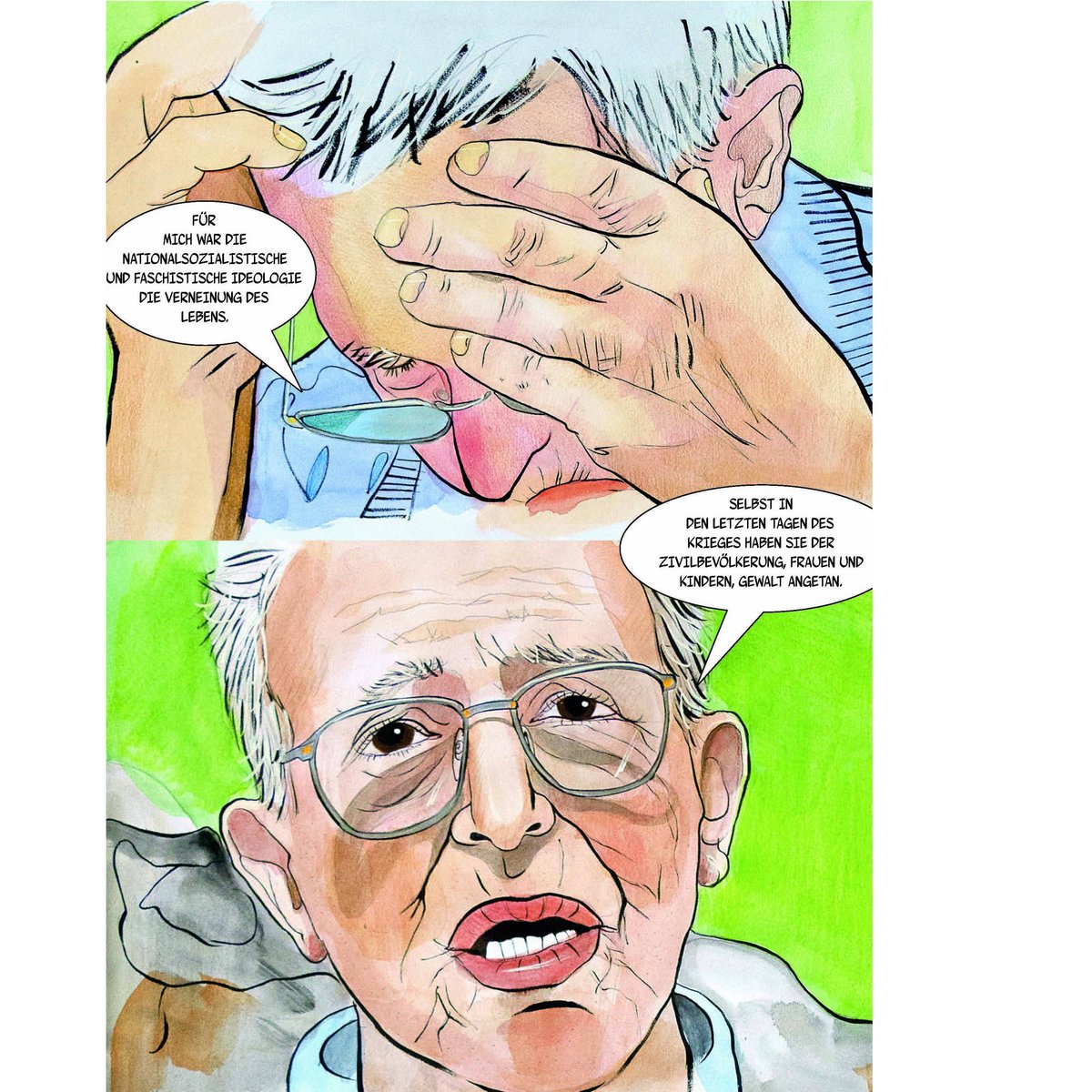 Lupi hat versucht, diese Fähigkeit Pieris, diese Momente einzufangen – in ihrer Graphic Novel lässt sie Pieri, der am 10. Dezember 2021 starb, einfach erzählen. Und auch wenn die Lektüre nicht mit einer persönlichen Begegnung vergleichbar sein kann, wird zumindest ansatzweise nachvollziehbar, wie und warum dieser Mensch so auf andere wirkte. Auch weil ihn seine Erfahrungen nicht bitter werden ließen, sondern ihm eine Verpflichtung waren, für ein besseres Leben, eine bessere Welt zu kämpfen. Es gibt Menschen, die alleine durch die Art, wie sie über das von ihnen Erlebte erzählen, es in Zusammenhänge setzen können, die Relevanz der Erinnerung deutlich machen. Enrico Pieri war einer von ihnen.