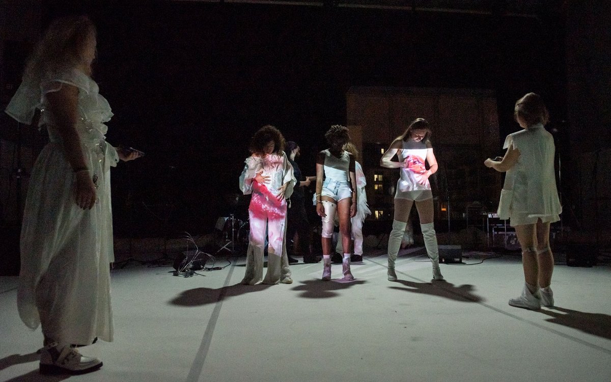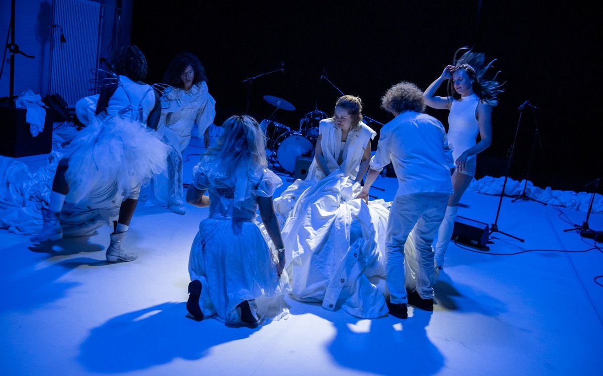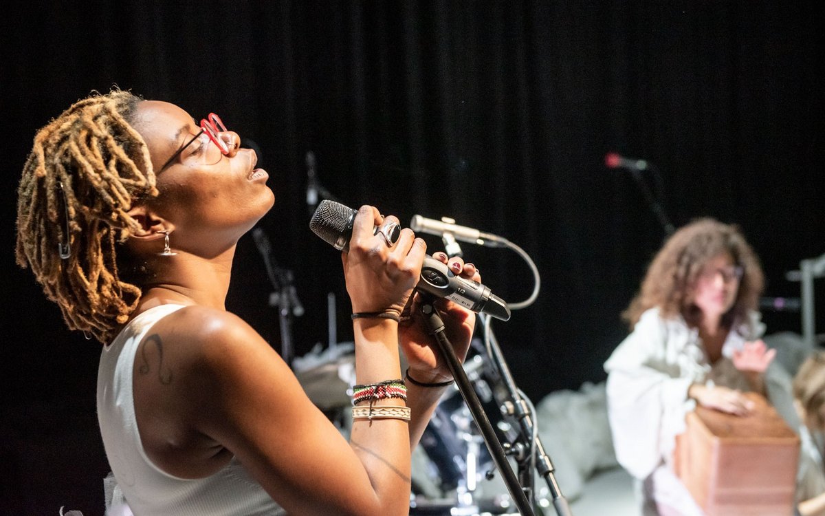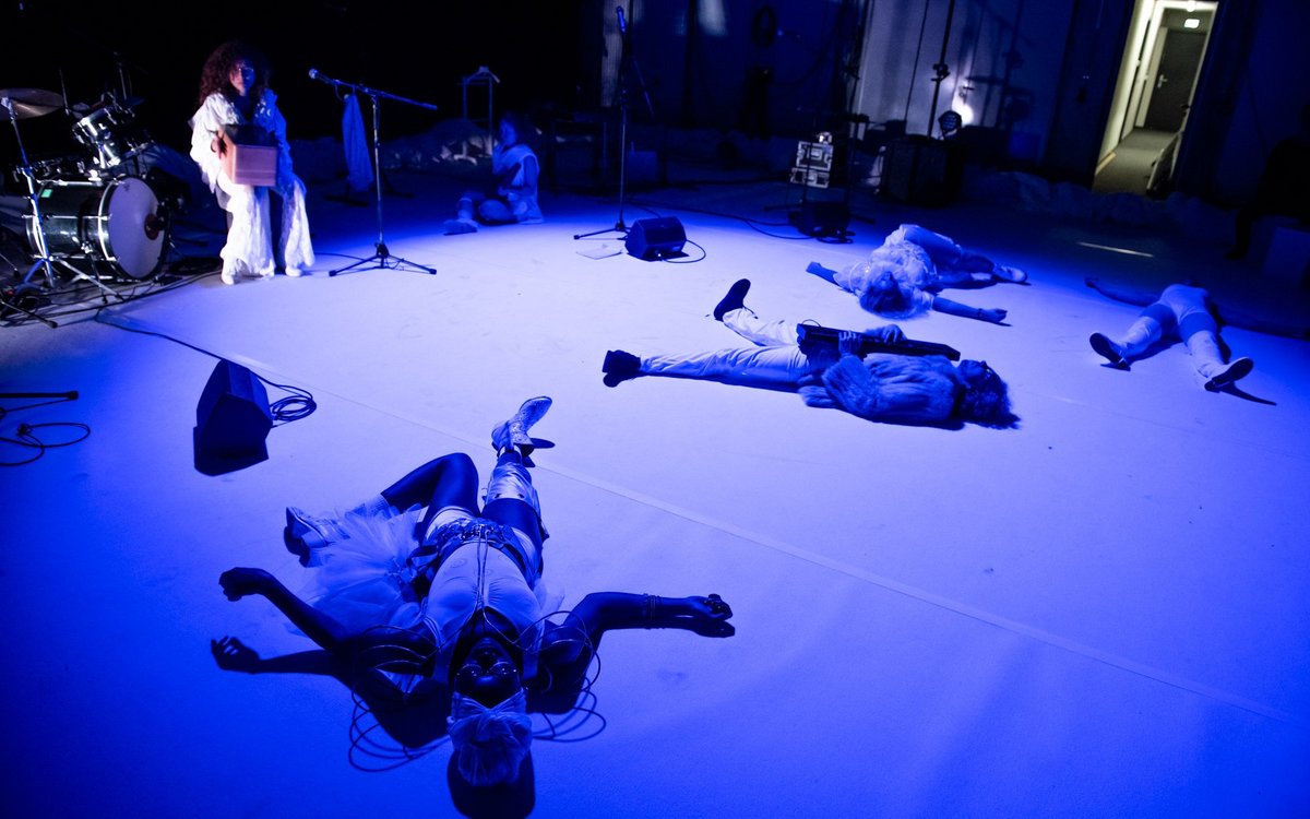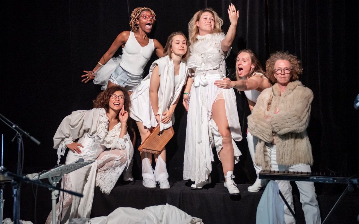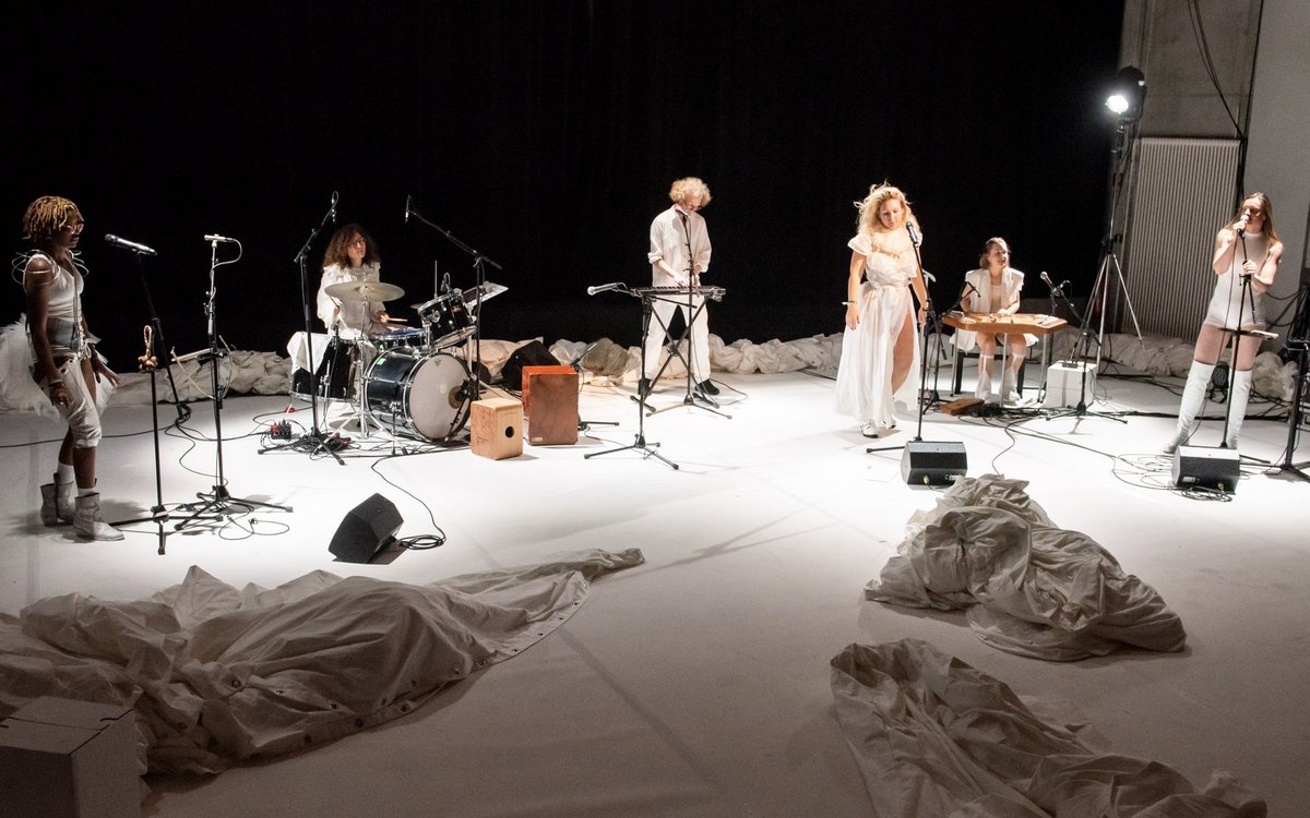 "Störung, Störung", singen Viktoriia Vitrenko und Nesindano Xhoes Namises. Das rhythmische Riff, das ein wenig an "Tainted Love" von Soft Cell erinnert, ist unterbrochen, die Töne schweben im Raum. Dann wechselt Schlagzeugerin Débora Vilchez in den Siebenachteltakt: Zwei Viertel schlägt sie, mit beiden Händen gleichzeitig, auf Hi-Hat und Tomtom, die verbleibenden drei Achtel mit dem Fußpedal auf der großen Trommel. Das rockt – doch nicht alle kommen auf Anhieb mit.