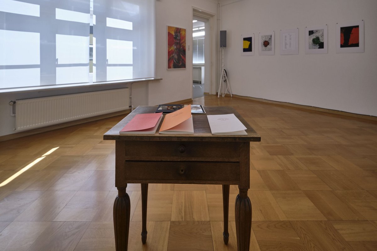 Aber die Kunstwerke allein machen noch nicht den Kurator und Kritiker sichtbar, der die Künstler:innen in Eröffnungsreden und Texten vorgestellt hat. Ein wichtiges Element sind daher vier Kunstmappen der Galerie im Möbelhaus Behr – einem der wichtigen Orte der modernen Kunst in Stuttgart. Ausgestellt sind jeweils vier Siebdrucke und in der Mitte, im selben Format, Wirths Text.