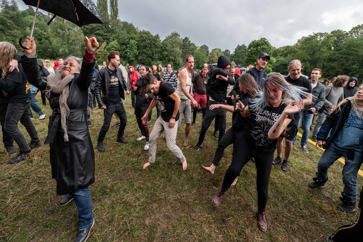 Wer darauf das Veranstaltungszelt Richtung Hauptbühne verlässt, erlebt ein ziemliches Kontrastprogramm: Die Ludwigsburger Metal-Band "Death by Dissonance" sorgt für einen der dezibelstärksten Auftritte des Festivals. Die beiden Sänger schütteln zwischen abwechselndem Growling (der genretypische Röchel- und Grunzgesang) ihre Matten und Dreadlocks, als gäbe es kein Morgen, und das Publikum macht im Regen kräftig mit. Es ist ein ziemlich alters- und szenenübergreifendes Moshen und Headbangen vom Hippie bis zum Punk, vom Grundschulkind bis zu (mutmaßlich) den Großeltern, das trotz des aggressiven Sounds ziemlich fröhlich aussieht. Ein Miteinander von Subkulturen und Generationen, das seit jeher zu den Markenzeichen des U&D gehört. Das, gepaart mit der bunten Musikmischung abseits des Mainstreams, ist wohl auch ein Grund, warum es für viele eines der besten und buntesten antikommerziellen Festivals der Region ist.