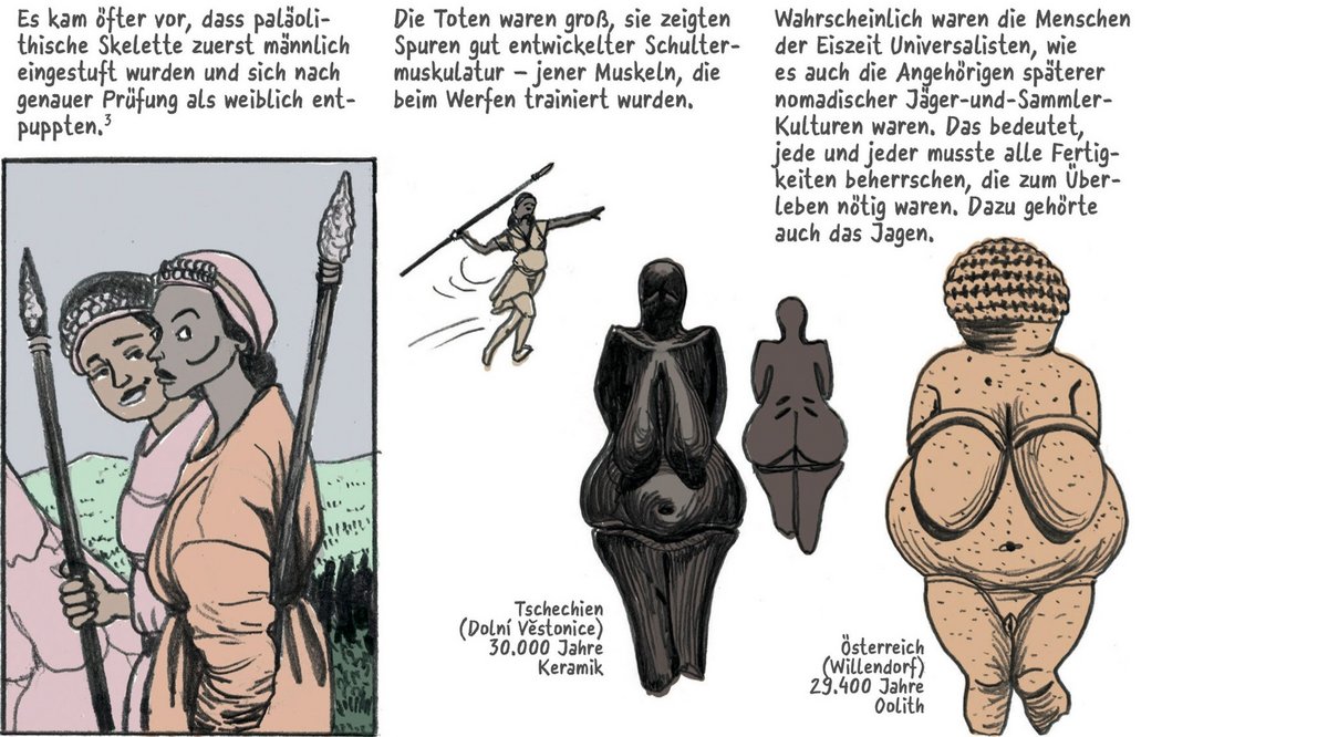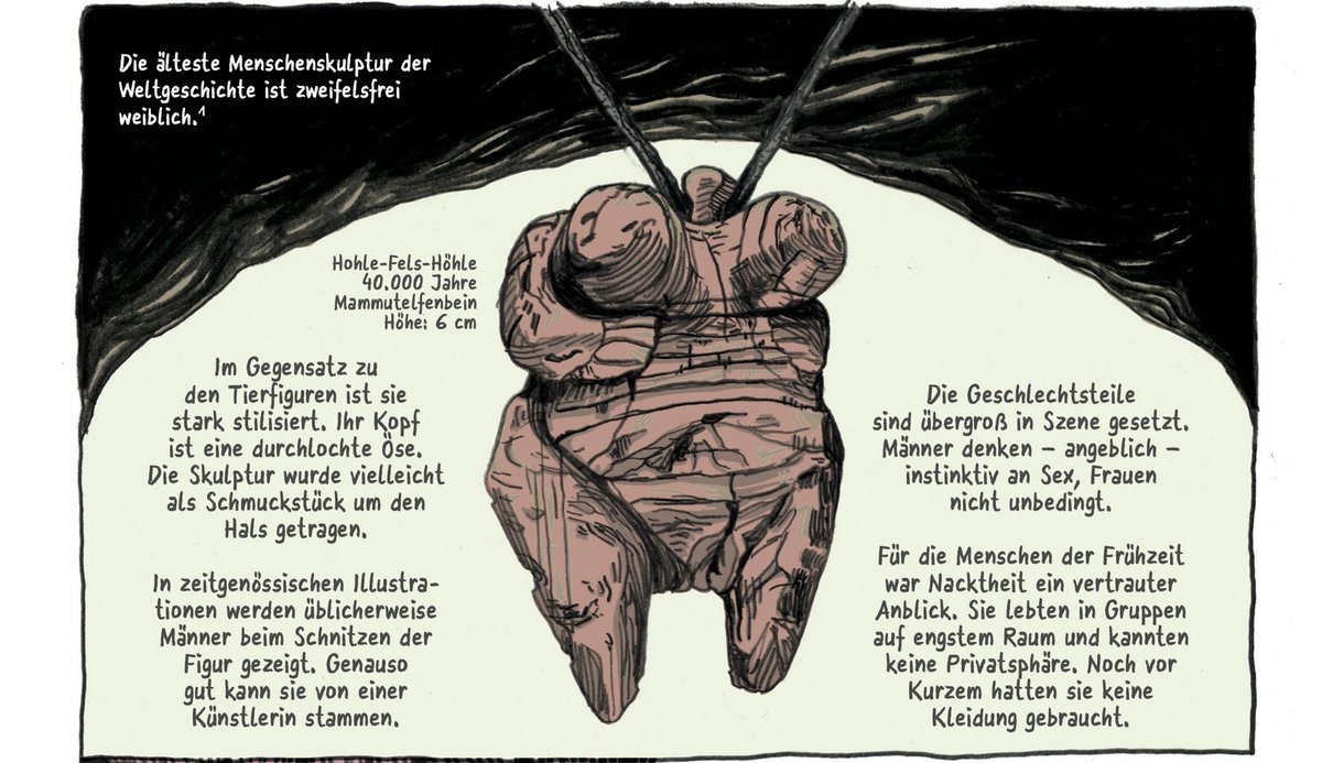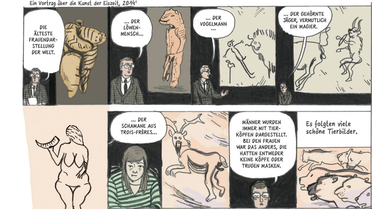 Ein Umstand, den Ulli Lust mit ihrem neuen Sachcomic "Die Frau als Mensch" ändern will. Die 1967 in Wien geborene Comiczeichnerin stellt all den bekannten Bildern neue entgegen. Sie kontrastiert dabei wissenschaftliche Forschung mit eigenen Erfahrungen und entwirft einige hypothetische, aber nicht unplausible Szenarien, wie das Leben in den frühen menschlichen Kulturen ausgesehen haben könnte.