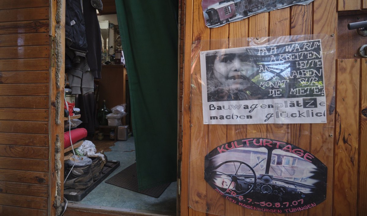 "Früher", sagt Jenny Pfeiffer, "war ich auch so unterwegs." Jahrelang, erzählt sie, sei sie mit ihrem damaligen Partner in Spanien umhergezogen. Dann wurde sie Mutter und suchte nach einem Ort, an dem sie bleiben konnte. "In Spanien haben wir gehört, dass es in der Tübinger Wagenburg viele Kinder gebe." Seit 23 Jahren nun lebt sie in der Wagenburg Bambule, ist mittlerweile Großmutter. Sie ist Jugend- und Heimerzieherin, arbeitet in Schichten, muss deshalb mitunter an ihrer Arbeitsstelle übernachten. "Für mich", sagt sie, "ist das ein Riesenunterschied. Wenn ich in einem festen Gebäude schlafe, verliere ich die Nähe zur Umgebung, die ich hier habe. Man setzt sich hier auf ganz andere Weise mit dem Wetter auseinander, ob es nun regnet, ob es schneit."