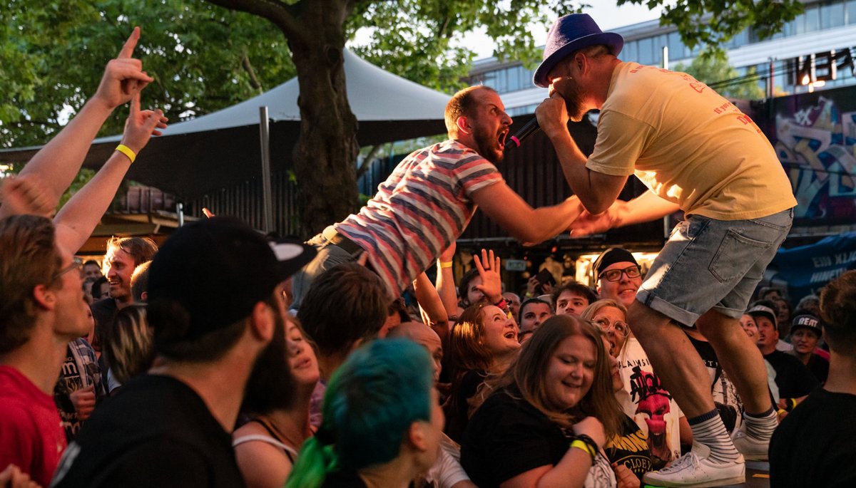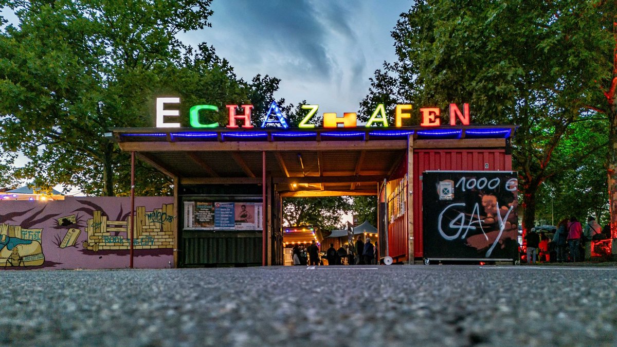 Wie alle Kultureinrichtungen brachte Corona das Franz.K in eine schwierige Situation. Da passte es, dass eine Open-Air-Spielstätte in Reutlingen auch von städtischer Seite schon lange gewünscht wurde. Ein Architektenwettbewerb fand statt, das Franz.K bot seine Unterstützung an – und die Stadt überließ dem Soziokulturellen Zentrum die Umsetzung. Nach schwierigen Verhandlungen stemmte der Verein das Projekt schließlich mit einer Anschubfinanzierung in Höhe von 50.000 Euro durch die Stadt. Den Rest der notwendigen Investition von 375.000 Euro leistete das Franz.K. In nur acht Wochen entstand die Spielstätte am Echazhafen, unmittelbar hinter dem Gebäude des ehemaligen französischen Kinos. "Beim ersten Konzert war das Dach der Bühne noch nicht fertig", erzählt Claudia Heldt. "Als die Stadtverwaltung kam mit der Feuerwehr und dem Ordnungsamt, um das Gelände abzunehmen, arbeiteten die Schweißer noch an der Schallschutzwand." Alles, was die behördlichen Besucher zu bemängeln hatten, war, dass ein Techniker eine Lautsprecherbox an einer Platane angebunden hatte: "Die Bäume durften wir nicht anrühren."