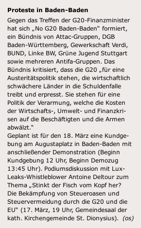 Über "Merkwürdigkeiten" beim "Öffnen und Füllen großer Löcher" (Verfüllung der Baustelle am Leopoldsplatz in Baden-Baden anlässlich des G-20-Finanzministerinnentreffens) berichtet Oliver Stenzel in durchaus amüsanter Weise. In der Tat ist es ein "Schildbürgerstreich", den die kurstädtische…