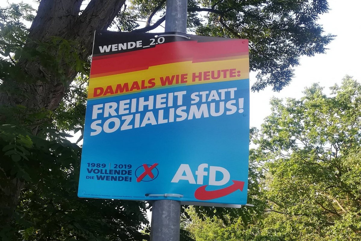 Was natürlich hanebüchener Unsinn ist, denn die Vereinigung erfolgte erstens nicht unter Mitwirkung der AfD und zweitens nicht im Hinblick auf die Verwirklichung ihrer Ziele. Außerdem gab es die AfD Anfang der 90er noch gar nicht, so dass es von einer ziemlichen Dreistigkeit zeugt, die Ereignisse von vor dreißig Jahren für sich zu verbuchen. Der in München geborene Andreas Kalbitz, der gemeinsam mit Björn Höcke zum ultrarechten Flügel der AfD gerechnet wird und jetzt als brandenburgischer Spitzenkandidat auftritt, zählte 1989 gerade mal siebzehn Lenze und war strammes CSU-Mitglied. Für den reiferen Wessi wie meinen Mann und mich ist es jedenfalls ein schockierendes Déjà vu, ausgerechnet hier und heute mit dem "Freiheit oder Sozialismus"-Slogan eines Franz Josef Strauß' konfrontiert zu werden. Das hat schon etwas Zombiehaftes.