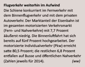 Wird all das bedacht, so war das Ergebnis der Fernbusliberalisierung vorhersehbar. Und offensichtlich auch so geplant. Allein von 2013 bis 2016 erhöhte sich die Zahl der Fernbusfahrgäste von 2,2 auf 25 Millionen; es kam zu einer Steigerung um mehr als das Elffache. Bei rund der Hälfte der neuen Fernbusfahrgäste dürfte es sich um zusätzlichen Verkehr handeln: Fahrgäste, die ihre Reise nur wegen des günstigen Angebots unternahmen oder vom Auto auf den Bus umstiegen. Zu einem erheblichen Teil wanderten Fahrgäste von der Schiene zum Busverkehr ab. Was im Übrigen auf den IC/ICE-Verkehr ebenso wie auf Teile des regionalen Schienenverkehrs, die Regionalexpress-Züge, zutreffen dürfte.
