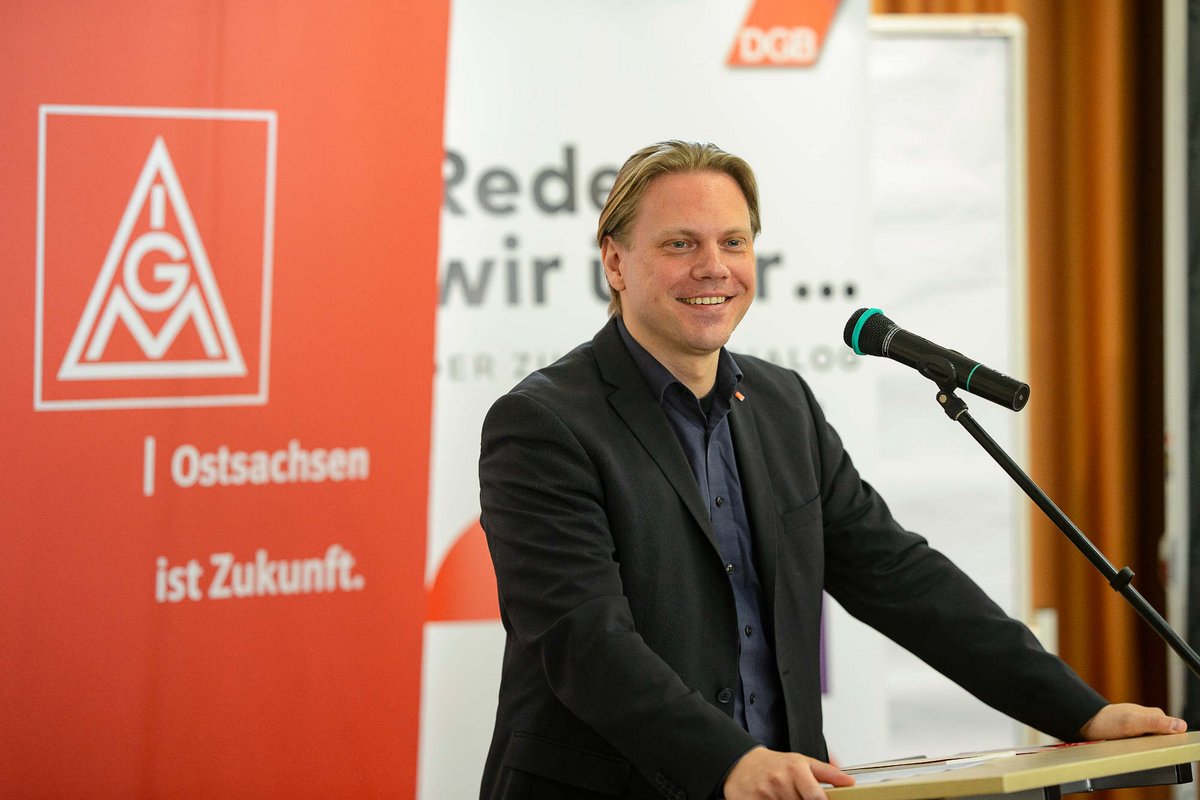 "Wir nehmen es nicht hin, dass wir hier keine Regelungen haben. Wir wollen Tarifverträge für unsere Betriebe. Also gehen wir da rein." Das sagt Jan Otto, 38 Jahre alt, Chef der IG Metall Ostsachsen, also die Ecke Bautzen, Riesa, Görlitz. Sein Job: Tarifbindung herstellen. Denn die ist im Osten noch unterentwickelter als in Westdeutschland.