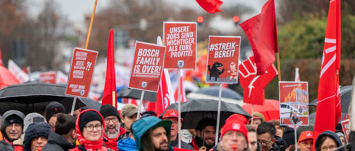 "Gangster", "Verbrecher" – solche Ausdrücke sind immer wieder zu hören und auf Plakaten zu lesen beim Demozug, der am Montagvormittag zum Werk von Bosch Power Solutions in Waiblingen zieht. Im Fokus der Wut steht Stefan Hartung, der seit 2022 Vorsitzender der Geschäftsführung der Robert Bosch GmbH ist und noch einige andere Posten bei Bosch hat, wie Gastautor Manfred G. Lieb in dieser Ausgabe aufzeigt. Dass er an diesem regnerischen Vormittag Zielscheibe vieler Demonstrant:innen ist, hat mit einer vor gut zwei Monaten bekannt gewordenen Entscheidung zu tun.