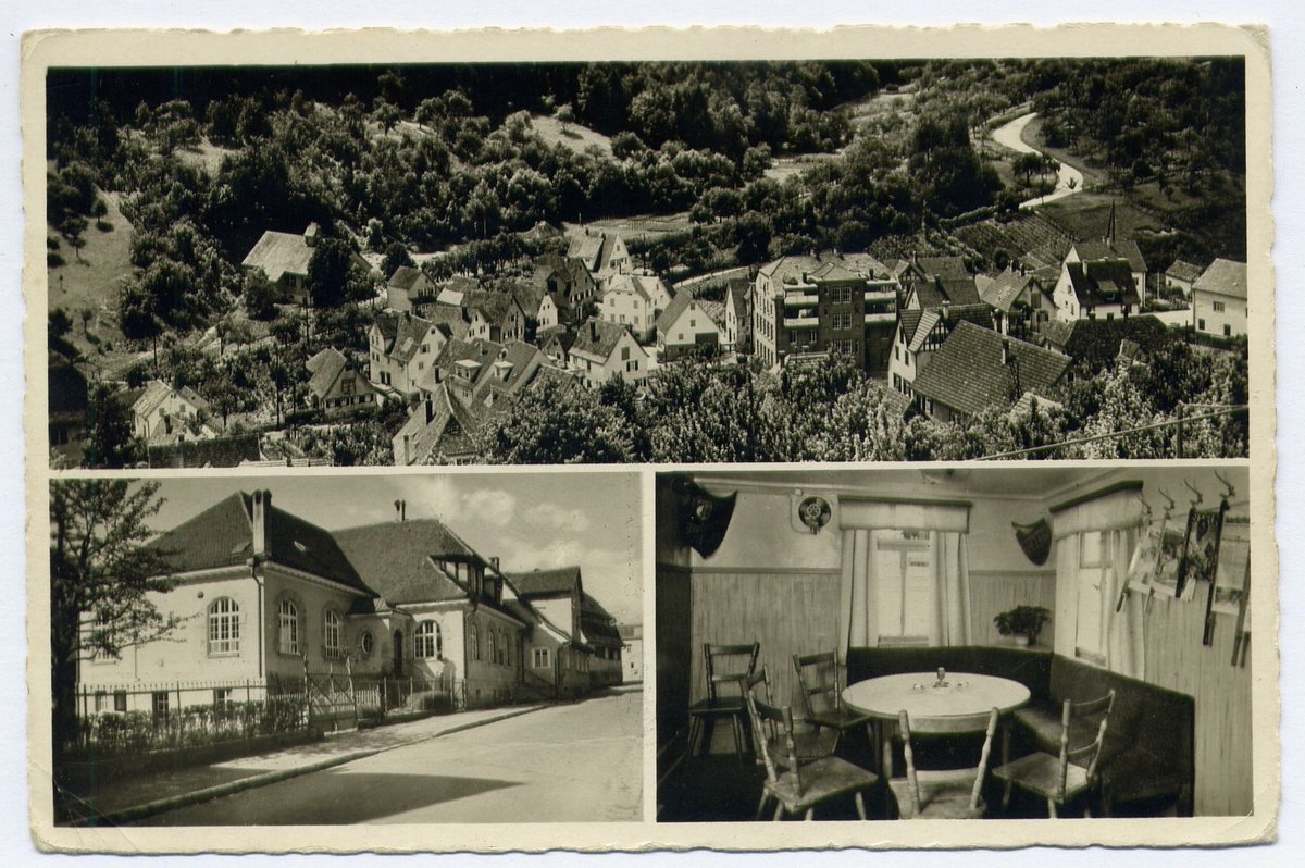 Über eine Online-Verkaufsplattform hatte ich mir eine Postkarte von Rohracker bestellt: dem Stadtteil von Stuttgart, in dem ich ab 1975 aufgewachsen bin. Auf der Postkarte sind drei schwarz-weiße Fotografien zu sehen: Auf dem größten Ausschnitt ist der damalige Ortskern abgebildet, mit dem Schulgebäude und der damals noch existierenden Turnhalle im Bußbachtal. Die beiden kleinen Ausschnitte zeigen eine Außen- und eine Innenansicht des Gasthauses zum Hirsch, das längst nicht mehr existiert. Ein ungewöhnliches, historisches Motiv.