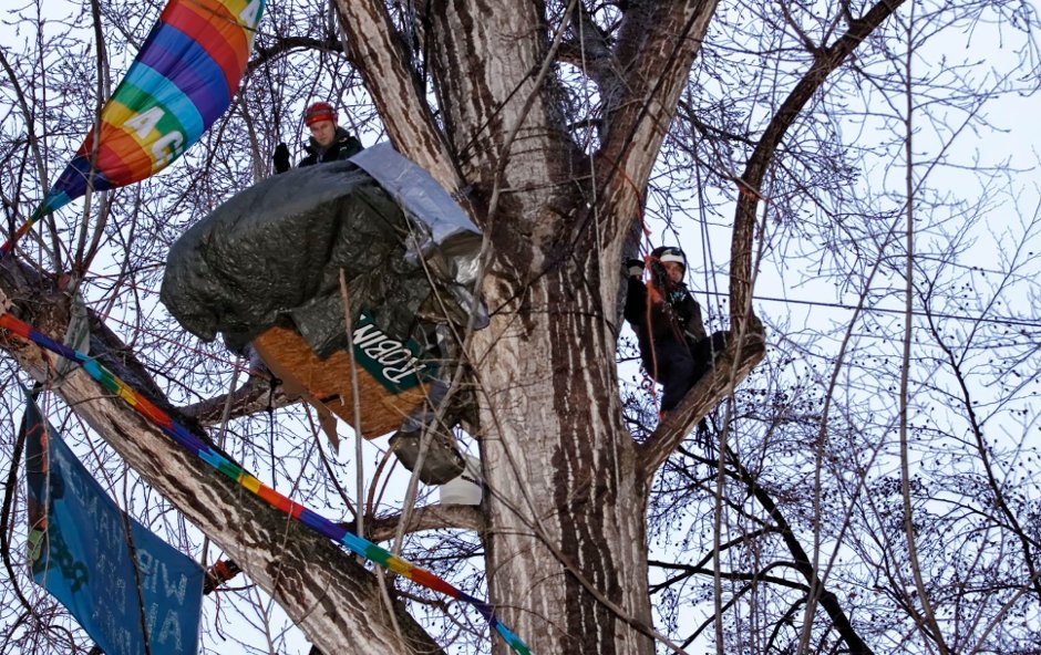 Im Hambacher Forst hielt nun der Brandschutz aus dem Baugesetz für eine Legalisierung der Räumung her. Vor dem Hintergrund von Stuttgart 21 oder BER mit ihrem Mausefallen-Brandschutz stinkt das zum Himmel. "Erst wenn alles zerstört ist, werden auch die Letzten merken, dass sie unfähig sind, einen Bahnhof zu bauen." Lassen wir es nicht soweit kommen. Bleiben wir oben!